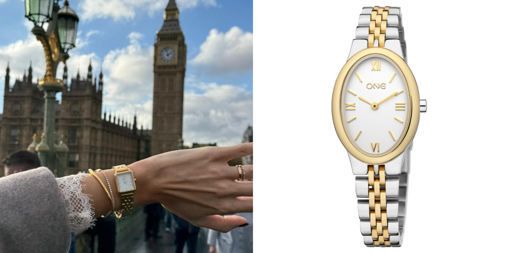 O pulso deixa de ser minimalista para se tornar uma verdadeira composição. A aposta está no stacking com pulseiras e no mix & match de metais. Relógios bicolores com pulseiras douradas, relógios dourados com detalhes prateados e combinações que criam contraste visual.